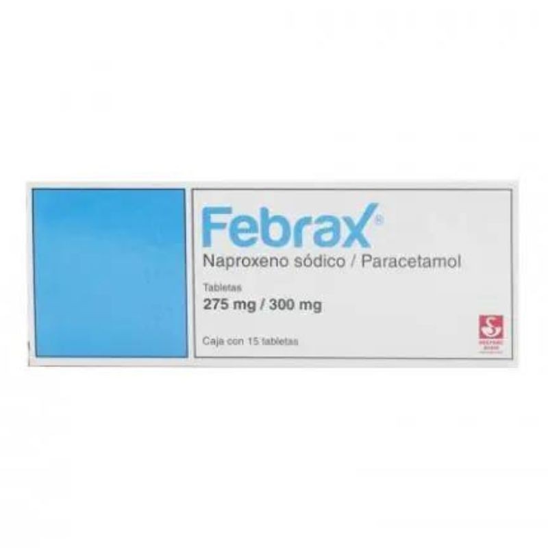 Febrax 275/300 mg es un medicamento de acción analgésica y antiinflamatoria, ideal para aliviar dolor moderado, fiebre e inflamación. Su combinación de naproxeno y pseudoefedrina ofrece un efecto integral para síntomas de gripe y congestión. Presentación con 15 tabletas para uso práctico y eficaz.